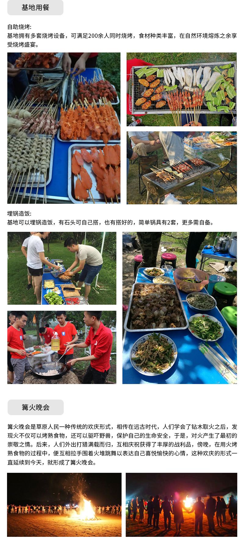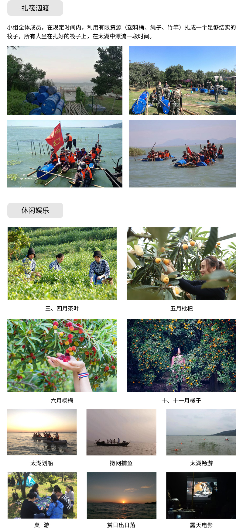 基地環境幽美,四面環水。草坪、帳篷、烤爐、土灶、拓展道具、民宿、快艇均有配套;不一樣的風景與配套設施,帶給團隊不一樣的體驗與收獲。全年均可露營、團建、拓展、定向、荒島、CS、燒烤等各類主題活動。遠離城市的喧囂,回歸自然的平靜。