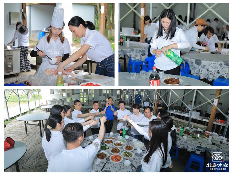 中午的土灶,小伙伴們自己自足,準備了一桌桌豐盛的午餐,為了自己的勞動成果,干杯!!
