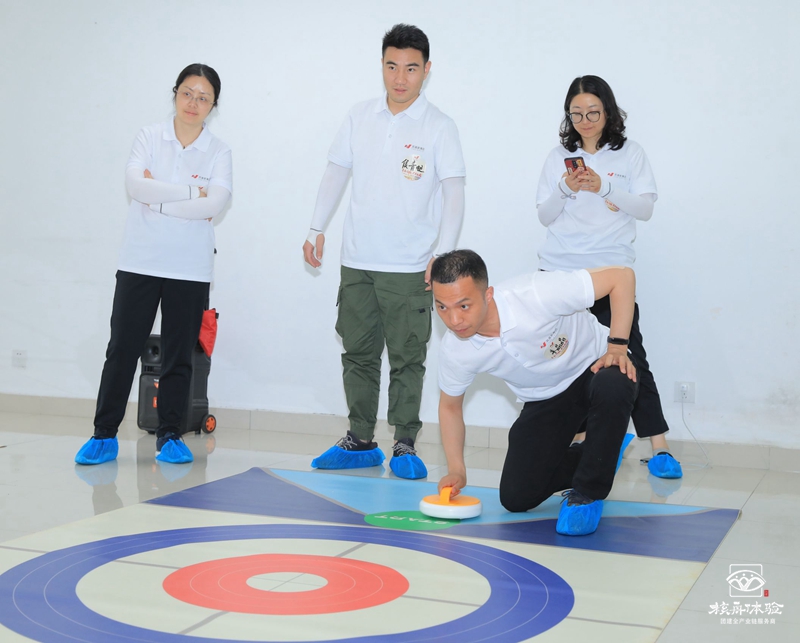 這次主題團建中安排的體育拓展項目是旱地冰壺,借鑒冬奧會項目中的冰壺球比賽形式和規則,打破季節、場地、設備的制約,以團建的形式助力冬奧會,了解冬奧會冰壺球項目的起源、發展,同時,團隊PK的比賽活動,凸顯團隊作戰的重要性,有領導指揮,隊員們相互配合,有個人的超常發揮以及在壓力面前處理事情的辦法,布局防守還是主打進攻,是團隊商量下的結果。