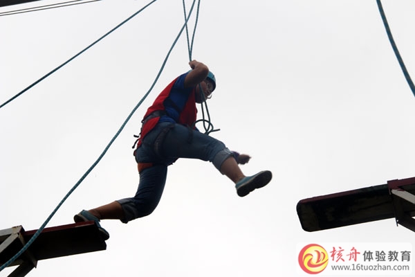 離地8米,中間有斷開的橋面,需要挑戰(zhàn)隊員跨跳一個來回。這是一個個人挑戰(zhàn)為主的、屬于高心理沖擊的高空挑戰(zhàn)類項目,整個過程需獨立完成。“斷橋一小步,人生一大步”濃縮了這個項目的精華;