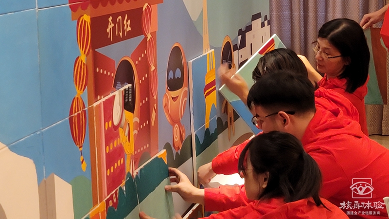 每一塊拼圖板都需要隊(duì)員們經(jīng)過(guò)溝通、設(shè)計(jì)、涂色,將每一塊色板做到相互協(xié)調(diào),繪制出的是每個(gè)團(tuán)隊(duì)成員的愿景,繪制出的是整個(gè)團(tuán)隊(duì)的合作能力,繪制出的是一幅美好藍(lán)圖!
